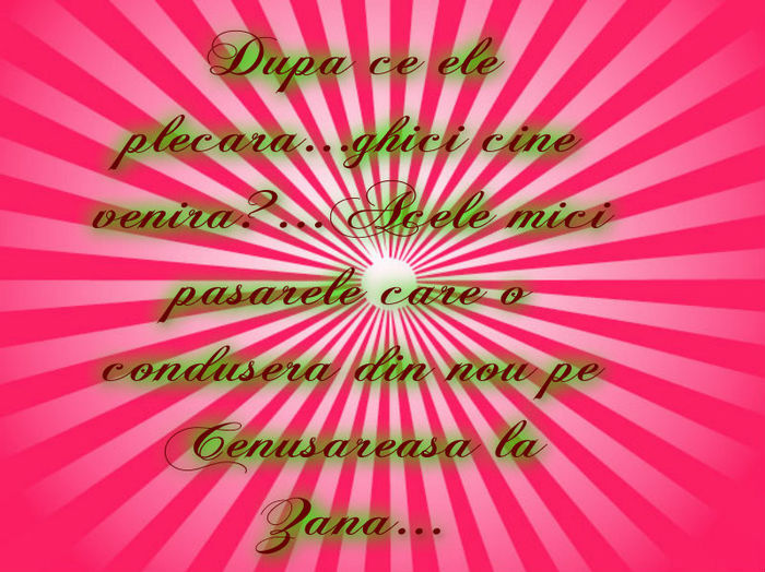 Pai...sper sa nu mai apara(dar in gandul ei ,nu asta dorea) Acum mai sunt 45 de minute ...